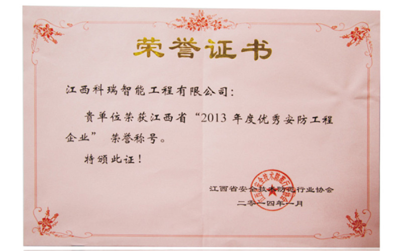 經(jīng)過了認(rèn)真的資料審查和專家評審,最終推薦了十幾家優(yōu)秀企業(yè)。這些企業(yè)一般規(guī)模較大,有較強(qiáng)的系統(tǒng)集成和軟件設(shè)計(jì)能力和建設(shè)施工經(jīng)驗(yàn),得到了政府及行業(yè)用戶的普遍好評,也是我省安防工程企業(yè)中的佼佼者,十幾家推薦企業(yè)名單也已經(jīng)通過雜志、網(wǎng)站等渠道進(jìn)行了對外公示。江西科瑞智能科技有限公司憑借自己的實(shí)力,很自豪的取得了“優(yōu)秀工程商”的榮譽(yù)稱號。