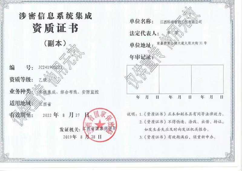 此次資質(zhì)的取得,標(biāo)志著公司在涉密安全性方面得到了權(quán)威性機構(gòu)的認(rèn)證,彰顯了公司在安全性、可靠性方面的綜合實力,為公司今后承接涉密工程、進一步拓展業(yè)務(wù)提供有力保障。